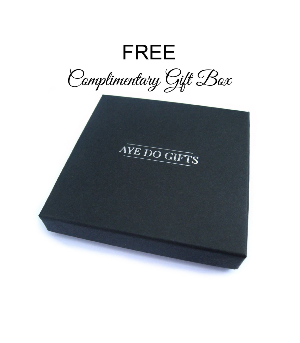 - All jewellery comes in a sophisticated black box labelled with 'AYE DO GIFTS'.
