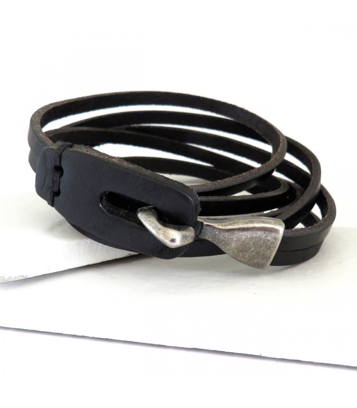 Men's black leather wrap bracelet comes with a rustic alloy clasp and is made from cowhide that is wrapped around the wrist giving it a cool trendy look. This design is suitable for an man or teenage boy and is ideal gift for an 18th, 21st or 40th birthday, Father's day, Valentines or even Christmas.
