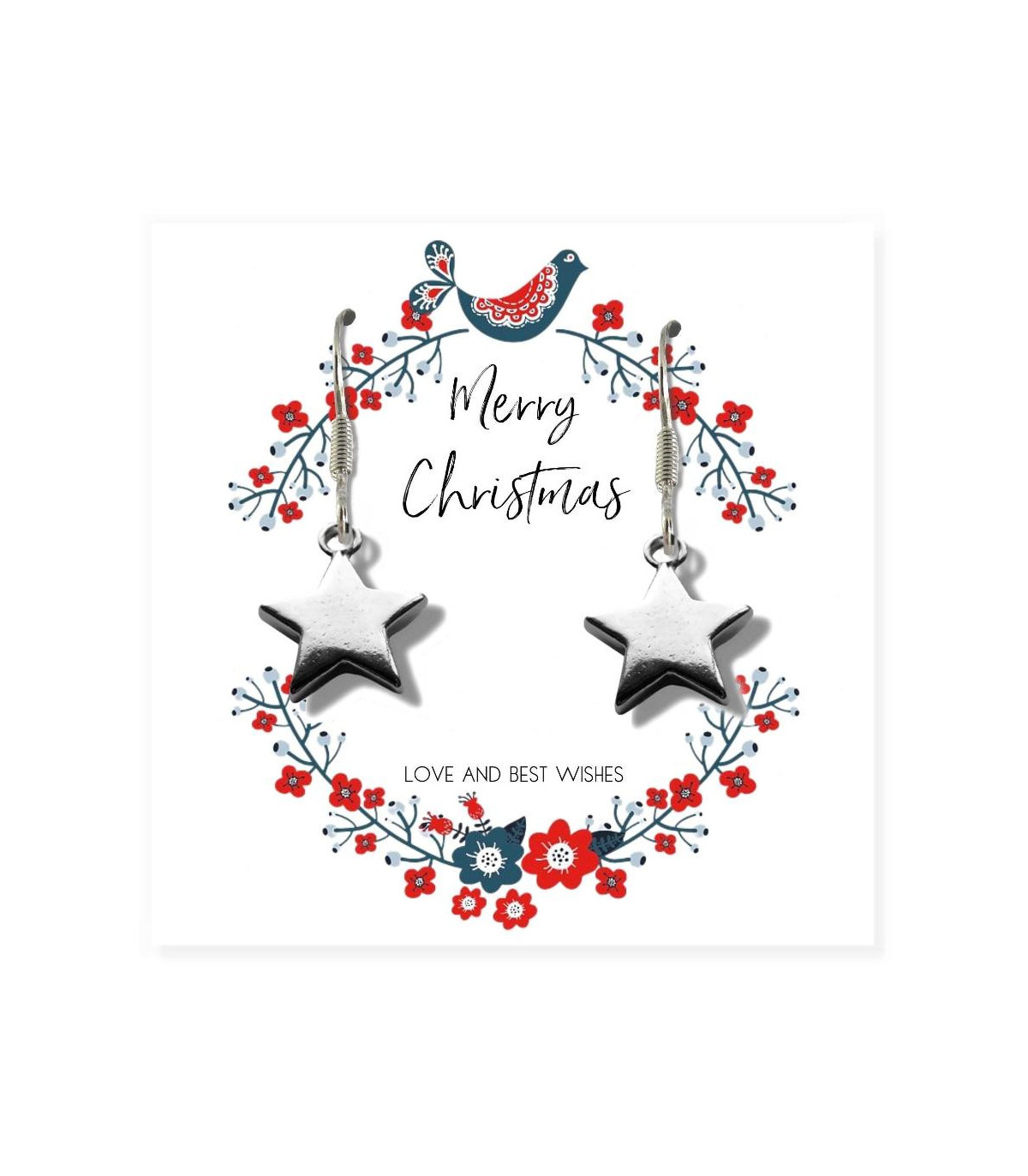 This festive Christmas gift hamper includes silver star drop earrings, presented on a message card with the phrase "May Your Christmas Be Merry and Bright" with cute Christmas gnomes. Additionally, the set comes with a beautiful linen scented candle with matches and four delicious milk chocolate hearts filled with creamy caramel centre. Perfect for mothers, sisters, daughters, aunts, or grandmothers, this delightful gift offers a small section for a personal note or the choice to keep it blank.