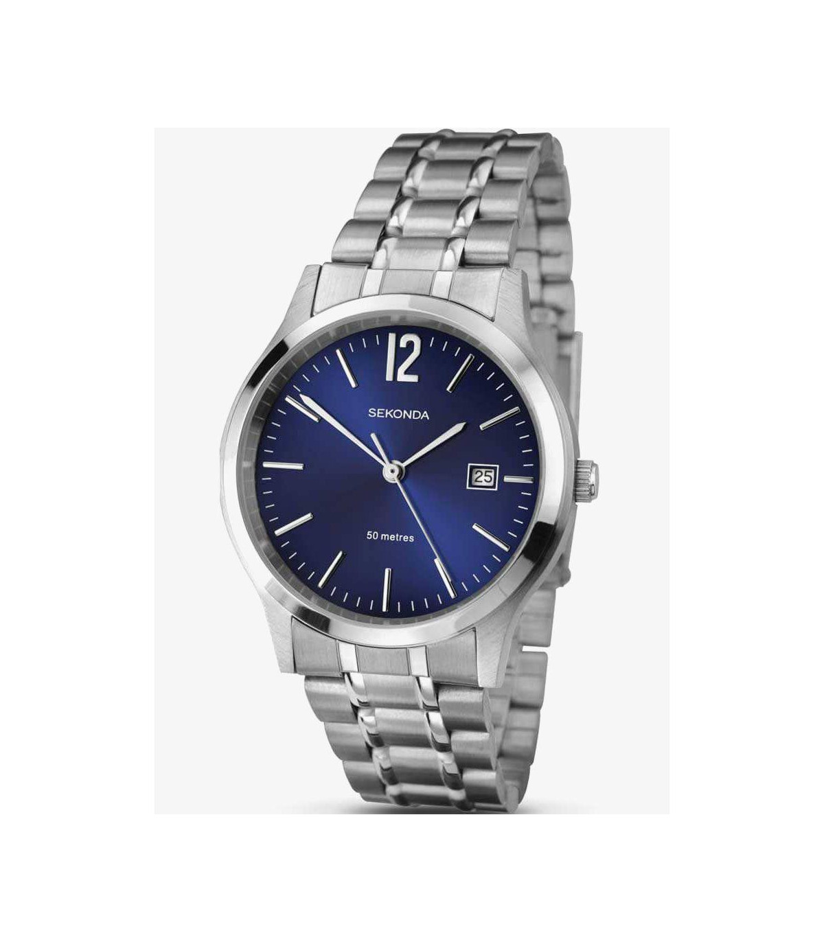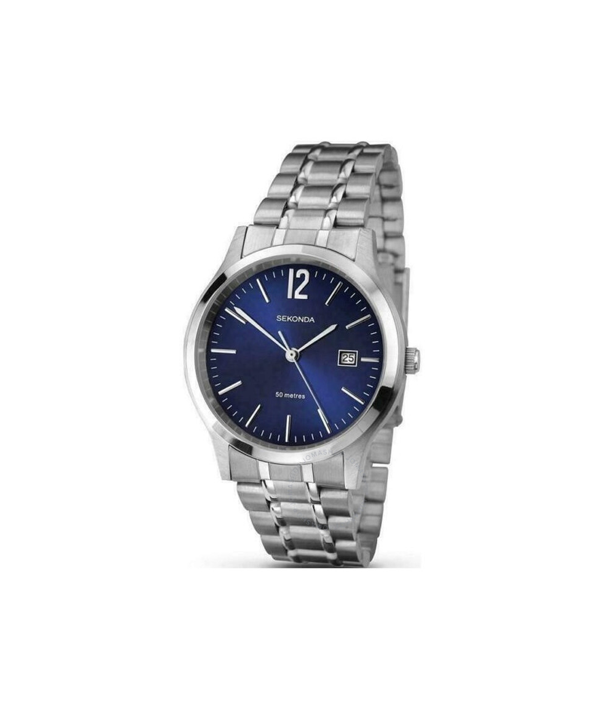 Sekonda Mens Basic Dated Blue Dial Stainless Steel Bracelet Watch - 3728