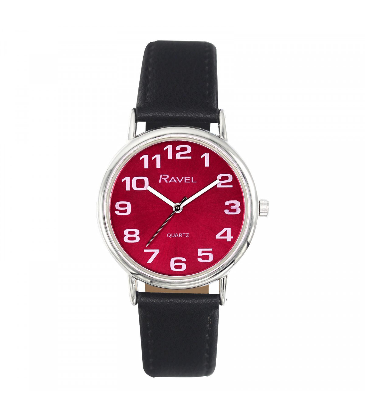 Ravel Ladies Classic Red Dial Black Leather Strap Watch R0105.51.2