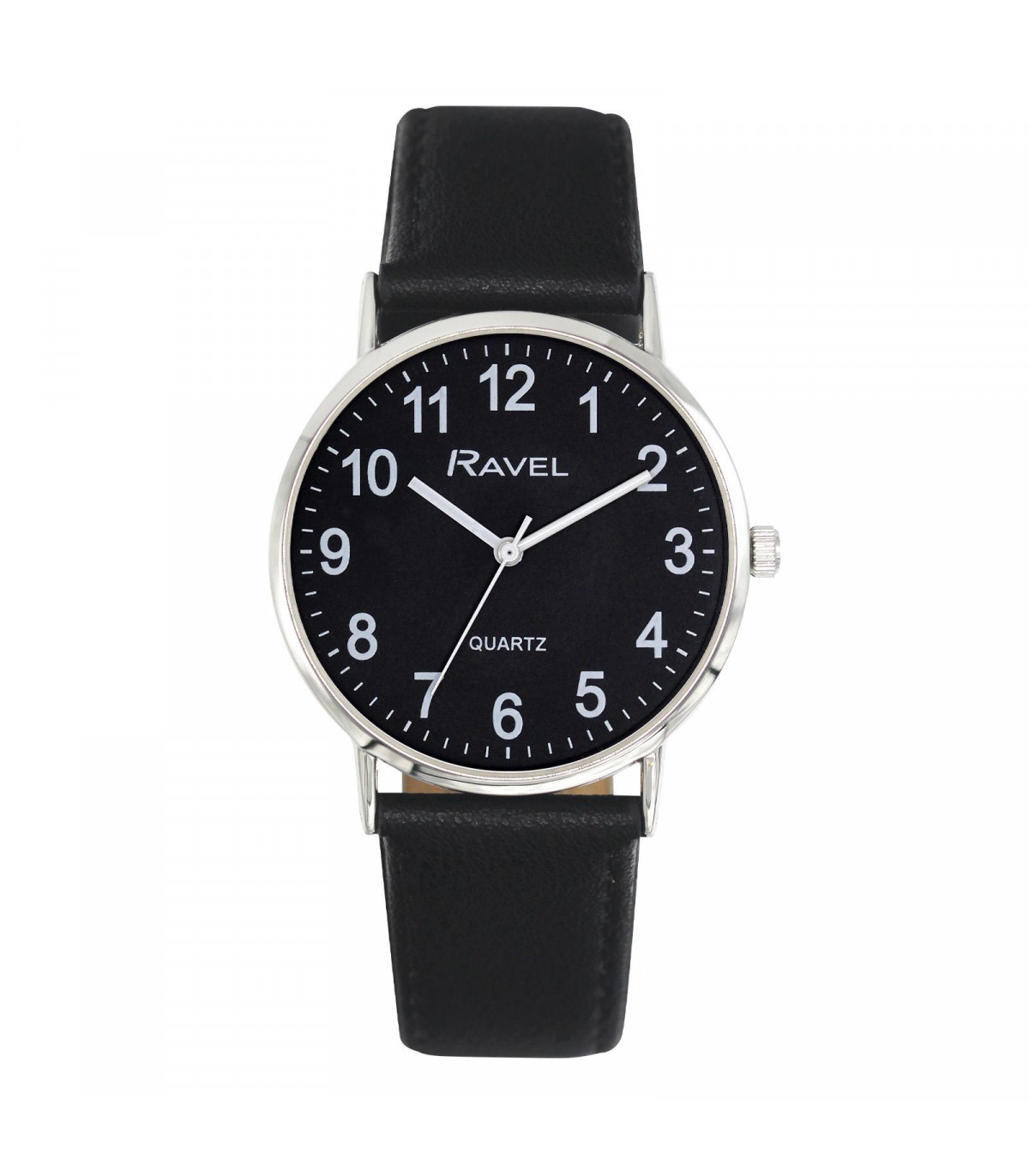 Ravel Mens Classic Big Black Dial Black Leather Strap Watch R0129.23.1