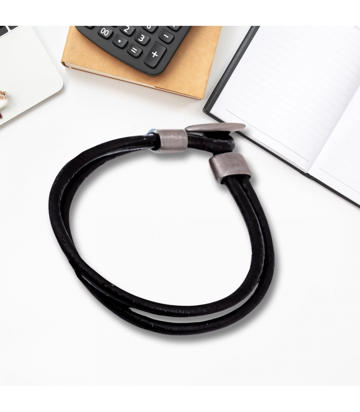 This simple men's black double leather bracelet is made from lovely cowhide leather with a cool metal details. This design fits up to an 18.5cm wrist, suitable for a teenage boy or a man. A great gift for a trendy man or teenage boy whether it's his 16th, 18th or 40th birthday, Father's Day, Valentines, Birthday or Christmas.