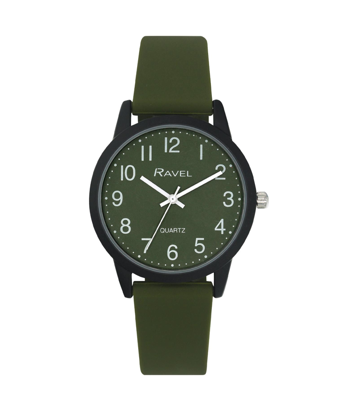Designed for active lifestyles, the Ravel Men's Sports Green Dial Silicone Watch (R1814.11) combines bold style with rugged functionality. Featuring a vibrant green dial and a comfortable silicone strap, this timepiece is perfect for athletes, outdoor enthusiasts, and anyone who values both fashion and performance.