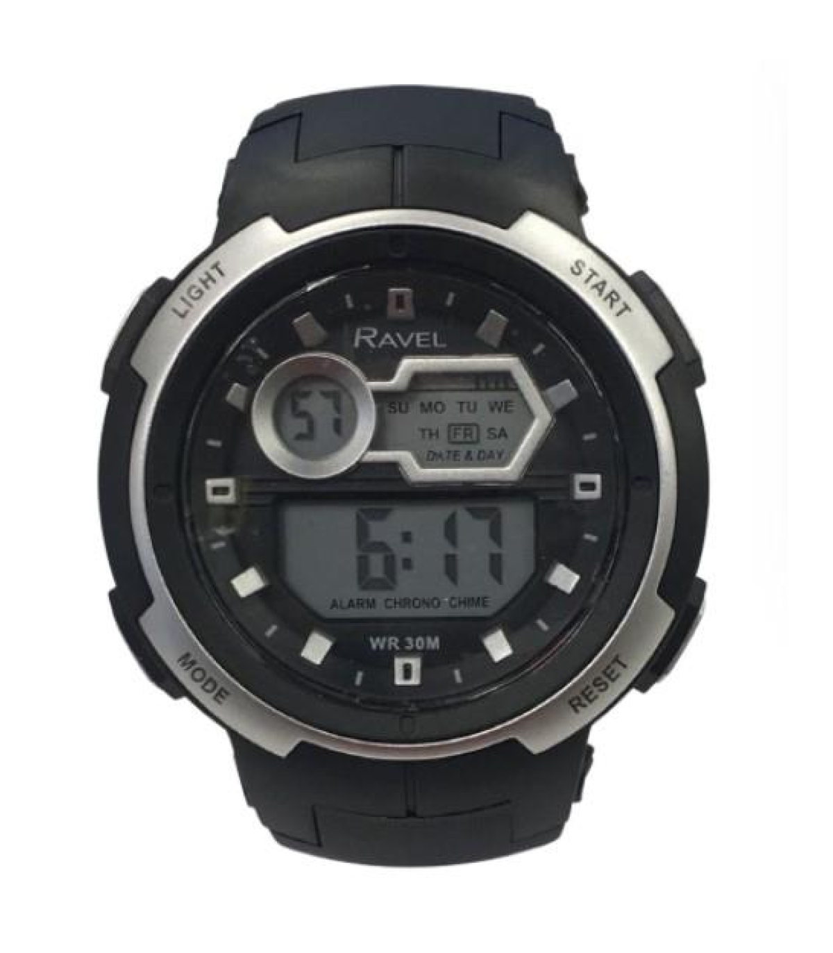 Ravel Mens 3ATM Digital Sports Silver/Black Watch RDG.14.40