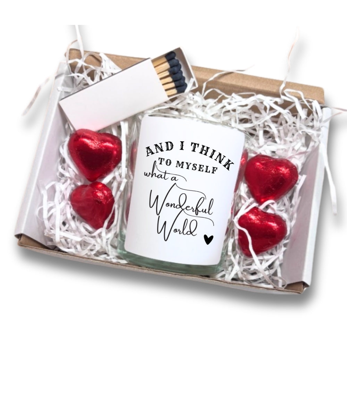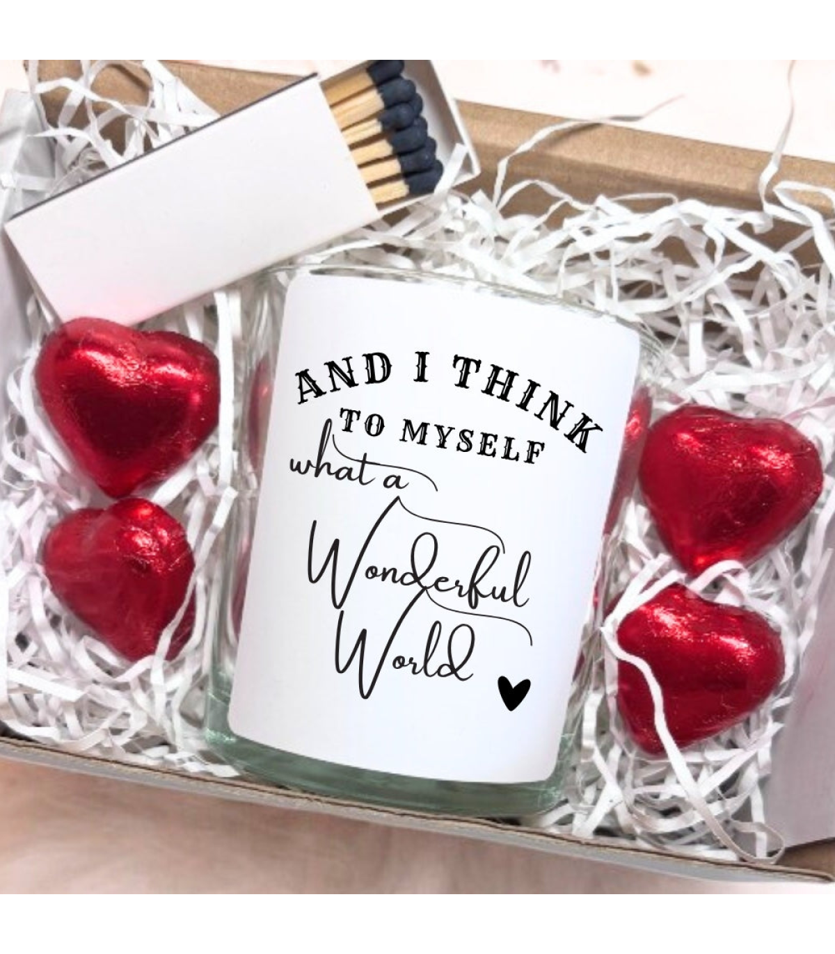 This small glass candle has a simple design with the wording "And I Think To Myself What A Wonderful World". The candle has a gentle linen scent and makes a lovely present for anyone just to remind them how wonderful life is. Once the candle has burnt itself out, you can use the glass to store little things, put it on display or use it as a tea light holder. Making it a wonderful keepsake gift long after it's finished.