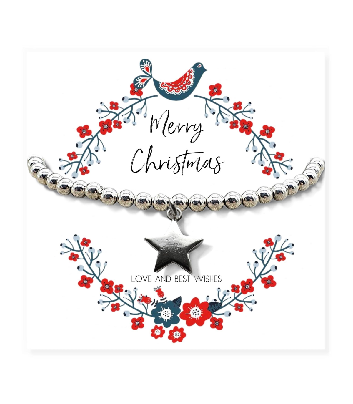 This elegant mini Christmas gift hamper includes silver star necklace, presented on a message card with the phrase "Merry Christmas Love and Best Wishes". Additionally, the set comes with a lovely pink square jewellery box, this small design is perfect for a starter jewellery box or for travelling. Perfect for mums, a sister, daughter, aunties, friends, teachers or grandmother, this pretty gift offers a small section for a personal note or the choice to keep it blank.