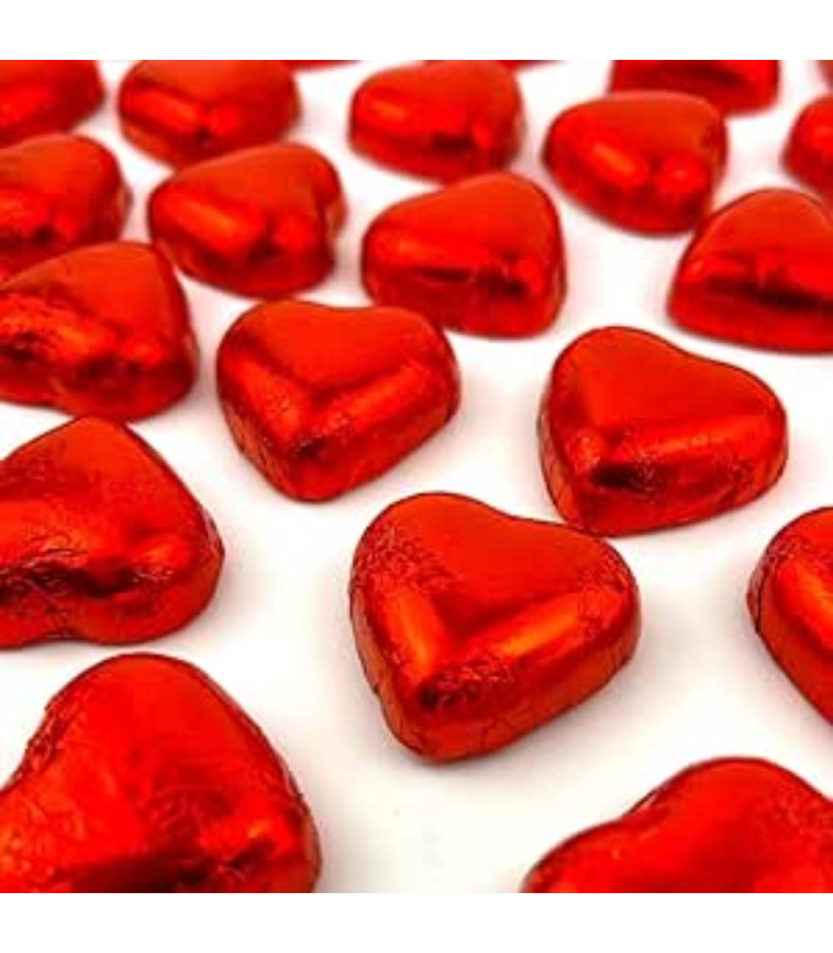 6 x Red Foiled Milk Chocolate Hearts - Chocolate Ingredients: Milk Chocolate contains - cocoa solids 32% minimum, milk solids 14% minimum, sugar, cocoa butter, whole MILK powder, Cocoa mass, lactose (MILK), whey powder (MILK), emulsifier: soya lecithin. Packed in a facility that handles nuts, soya and milk.