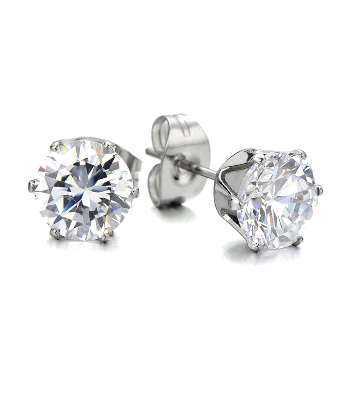 - Earrings: Cubic Zirconia Stud Earrings 6mm, Stainless Steel - Hypoallergenic