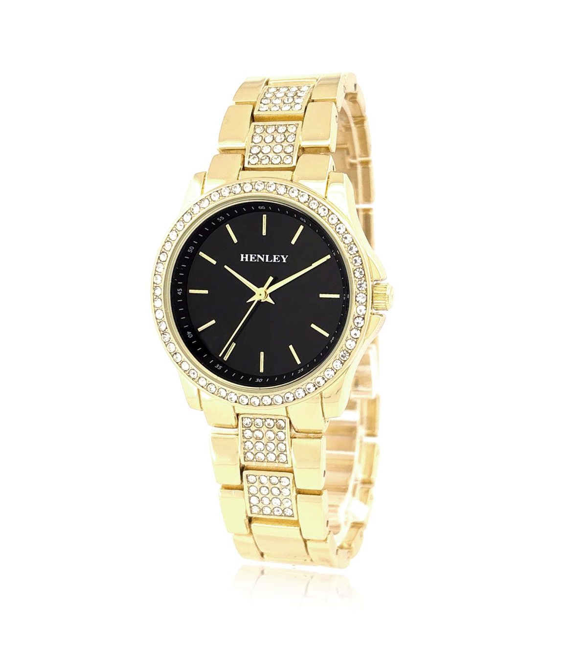 Henley Ladies Fashion Bling Black Dial & Gold Bracelet Watch H07342