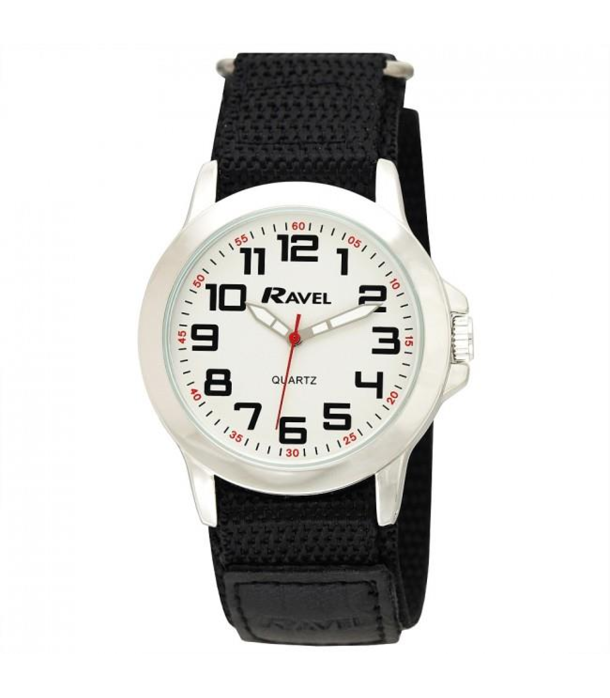 The Ravel Mens Velcro R1601 series provides the perfect watch for work and play. With their full bold arabic dials complete with minute track, the time can be read easily and quickly. The R1601 Velcro strap and sporty looking case with decorative top ring fit on the wrist comfortably whilst also being robust. Consistently good sellers!