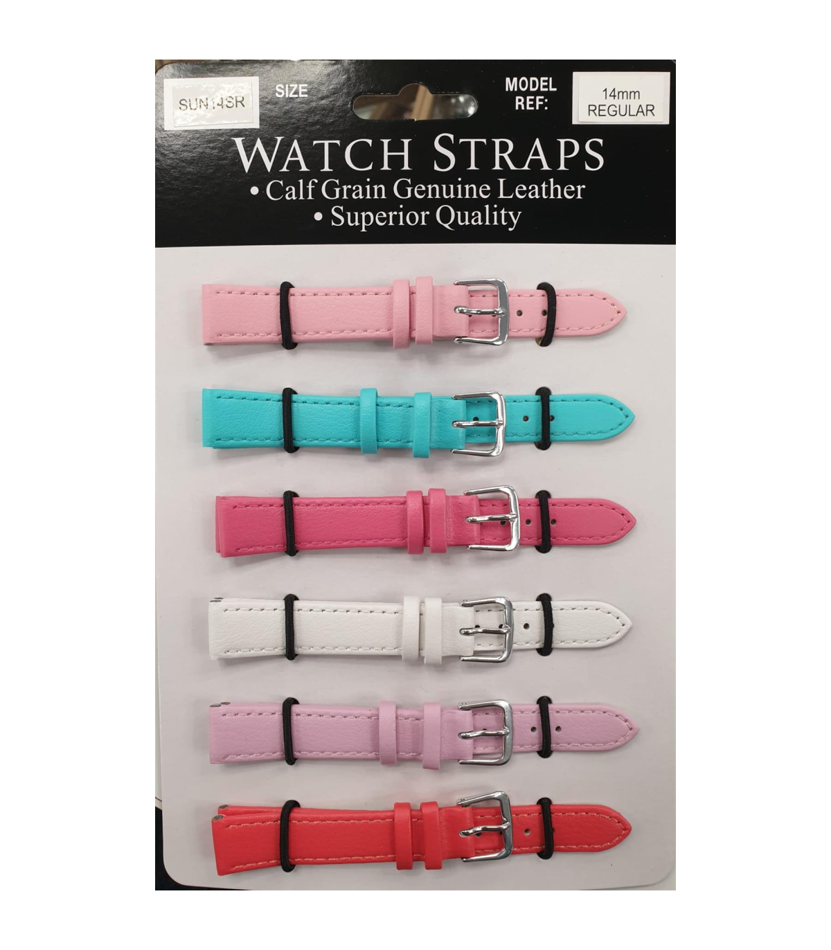 SUNSR Sun Mixed Colour Calf Leather Watch Straps Regular card of 6 - Silver Buckle