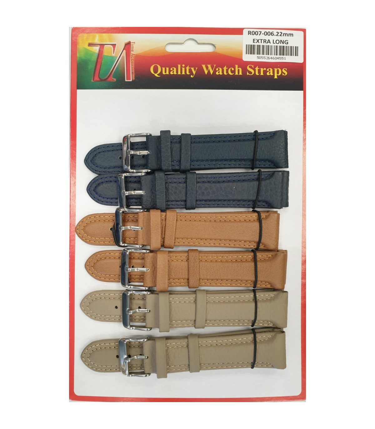 R007-006 22MM 5PK PADDED COLOUR WATCH STRAPS