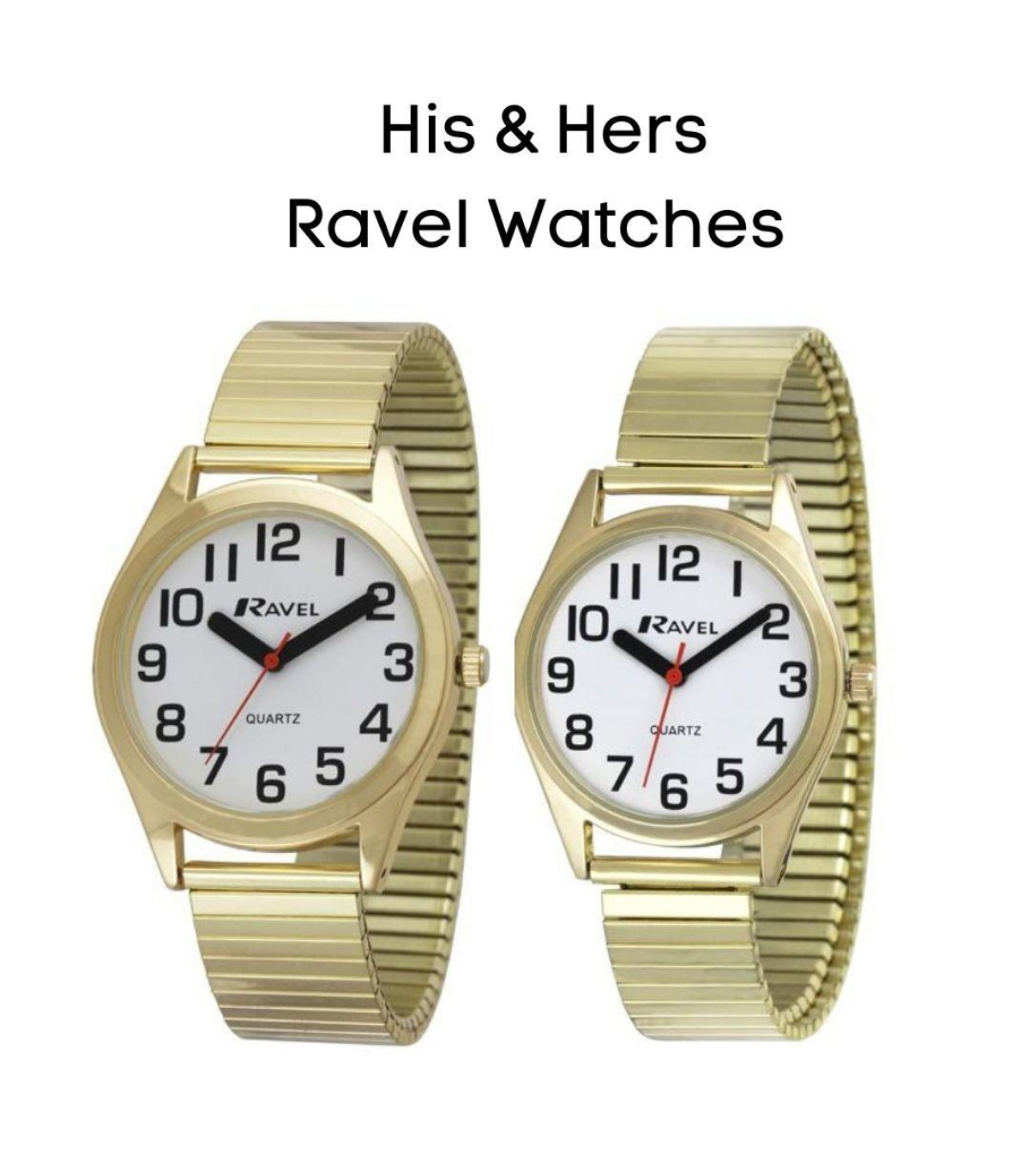 Ravel Mens Expander Bracelet Watch Gilt + Ravel Ladies Expander Bracelet Watch Gilt