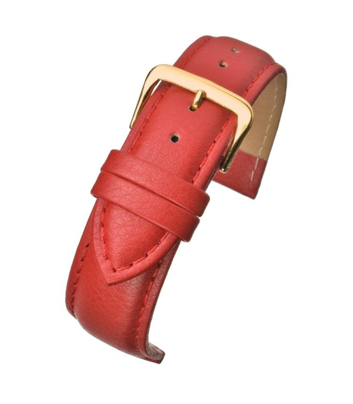 Red Padded Buffalo Grain Leather Watch Strap 24mm