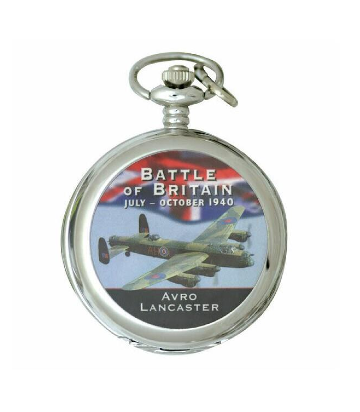 Ravel Picture Pocket Watch Avro Lancaster R1007.01 The Ravel R1007 pocket watch is a full-hunter design pocket watch with a Battle of Britain Spitfire feature picture. All Ravel pocket watches are packed in the Ravel tin presentation box. Polished Silver Pocket Watch Case with Feature Picture. Classic Full Arabic Dial. Classic Style Hands. Chain Included. Quality Quartz Movement. Packed in a Ravel Tin Presentation Box.