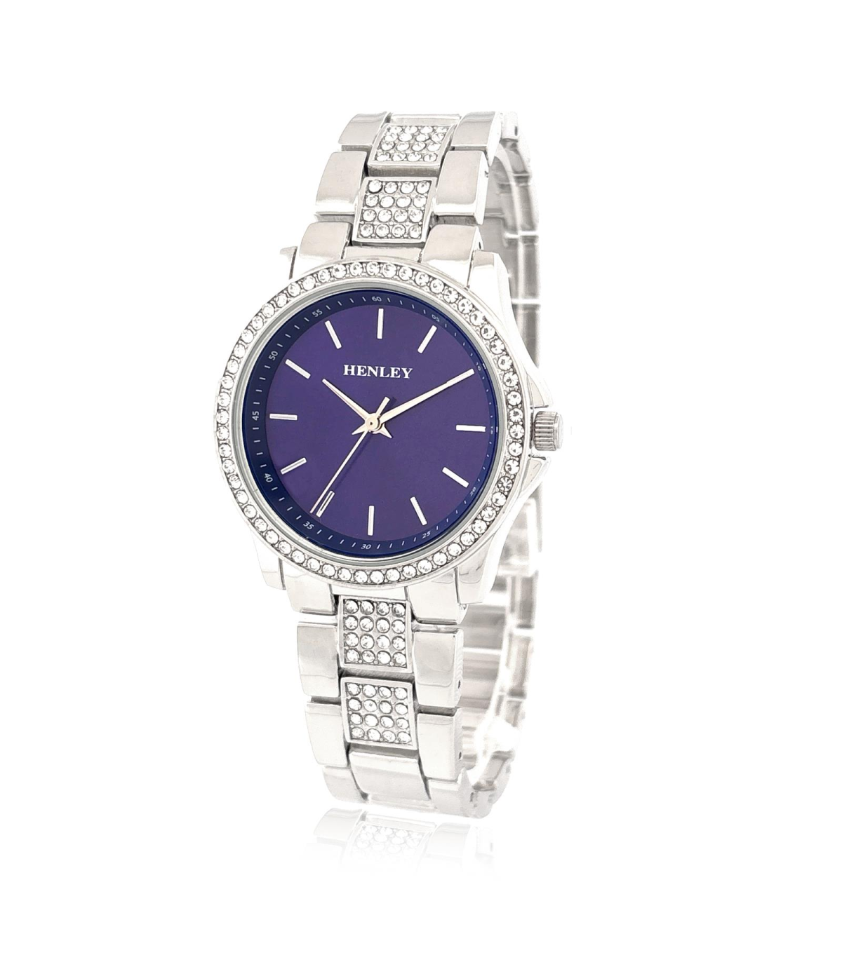 Henley Ladies Fashion Bling Blue Dial & Silver Bracelet Watch H07342