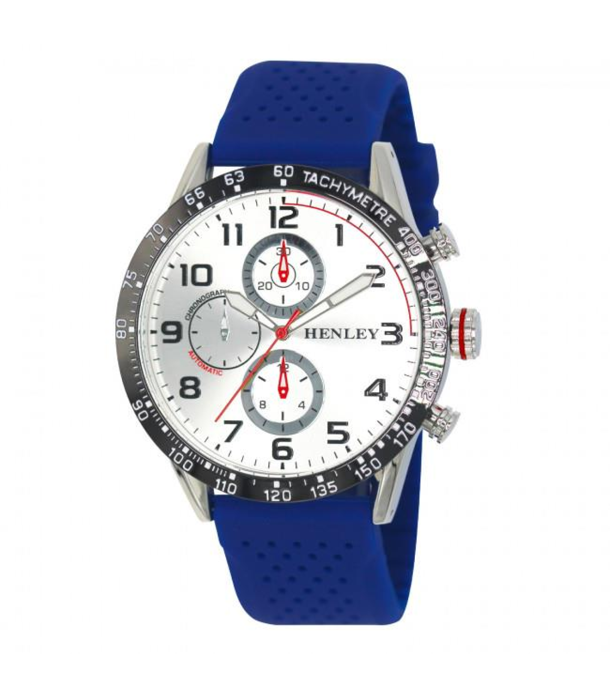 Henley Mens Large Polished Sports Silicone Watch Blue/Silver H02225.16