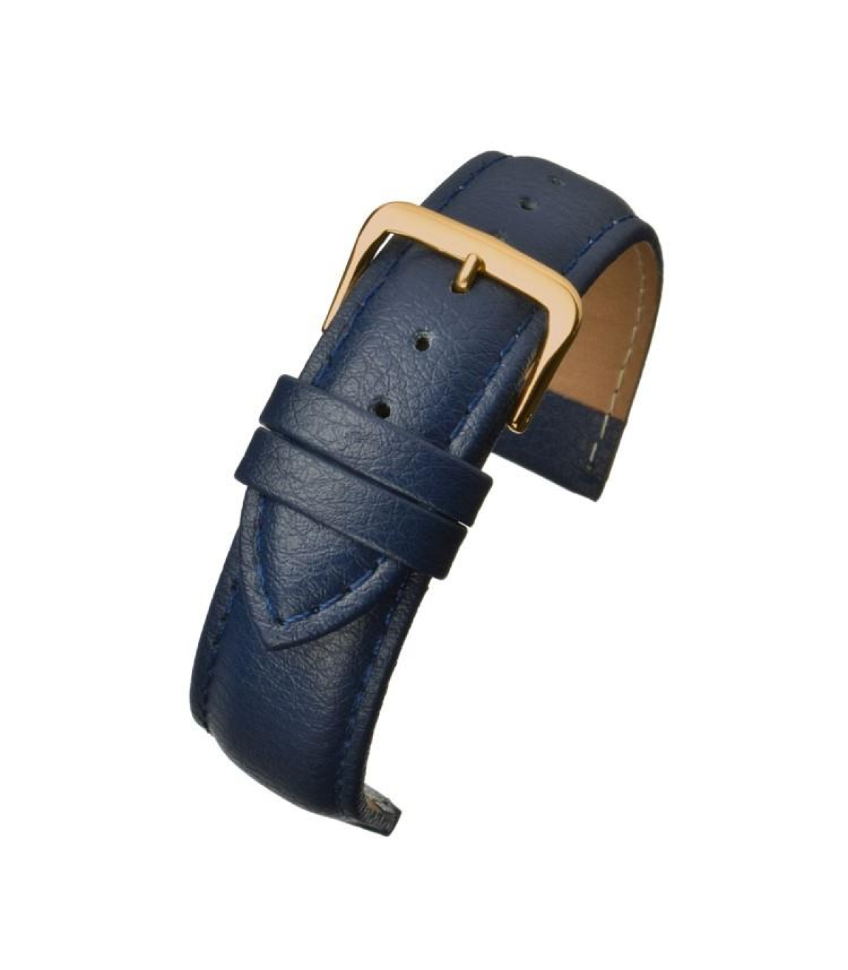 Blue Padded Buffalo Grain Leather Watch Strap 14mm