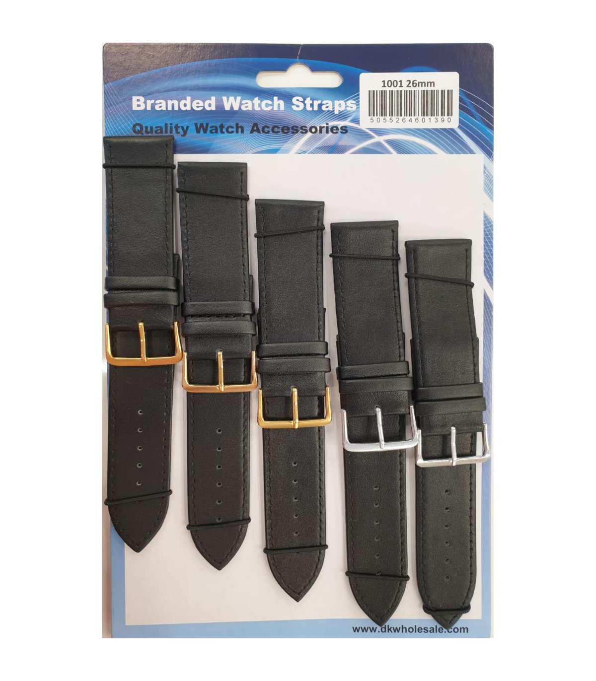 Black Leather Watch Straps Pk5 size 26mm 1001BK
