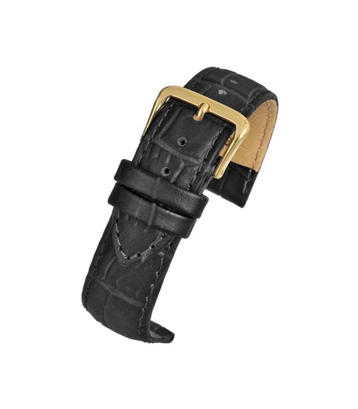 Black Padded Crocodile Grain Leather Watch Strap 18mm