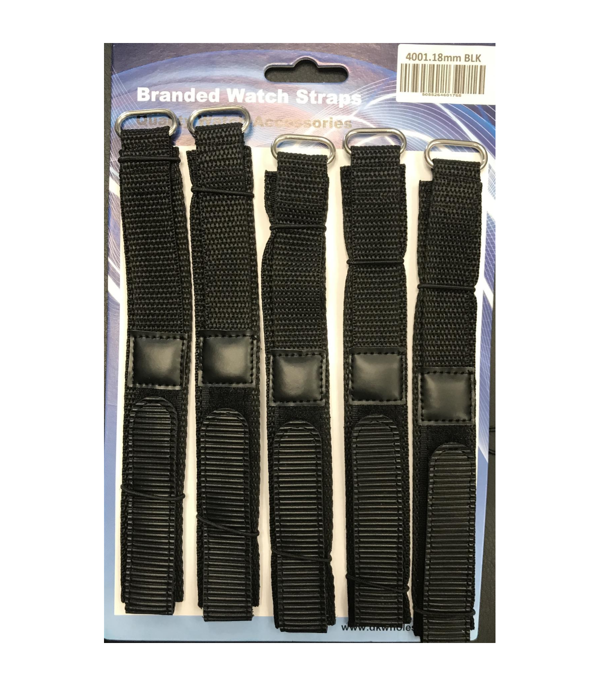 4001GVB 20MM PK5 VELCRO WATCH STRAPS BLACK