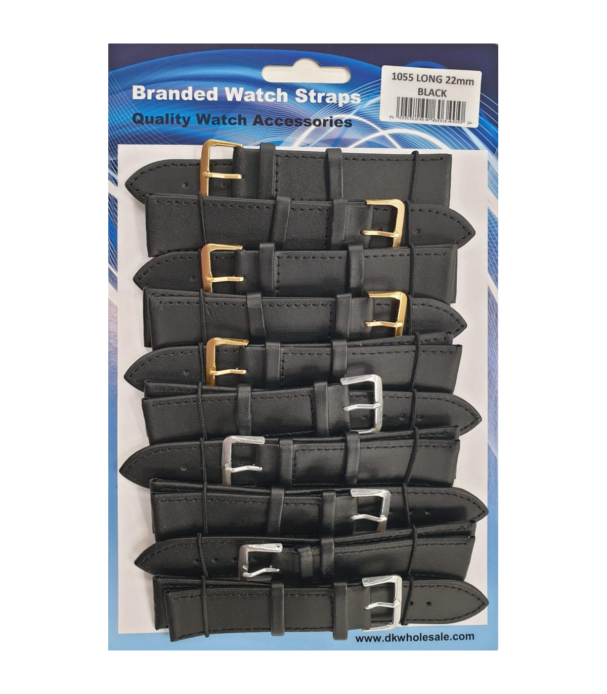 Leather Black Extra Long Watch Straps Pk10 size 22mm 1055.05