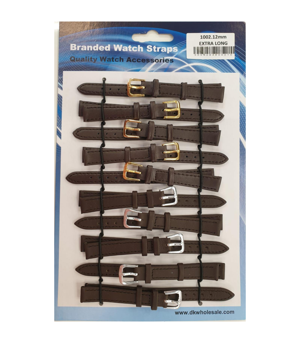 Brown Leather Extra Long Watch Straps Pk10 size 12mm 1002BR