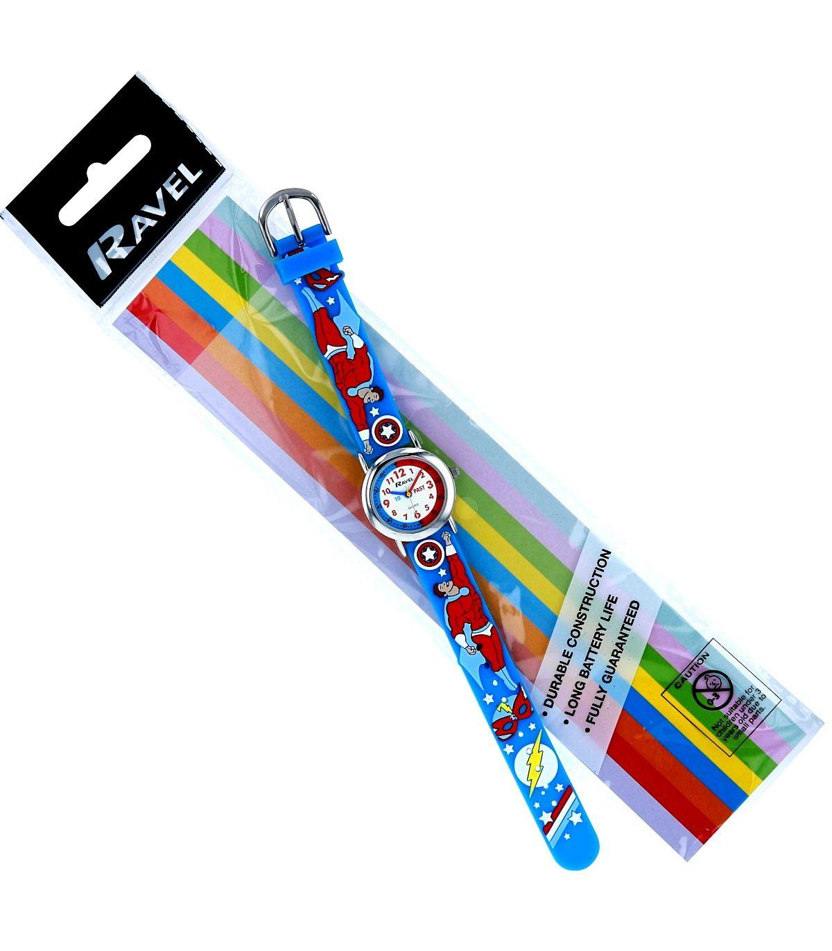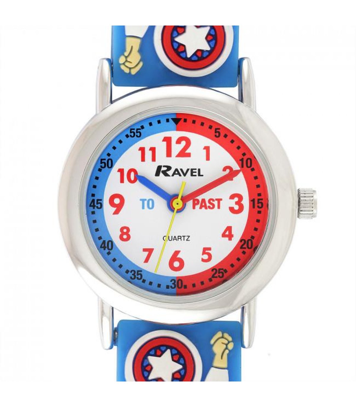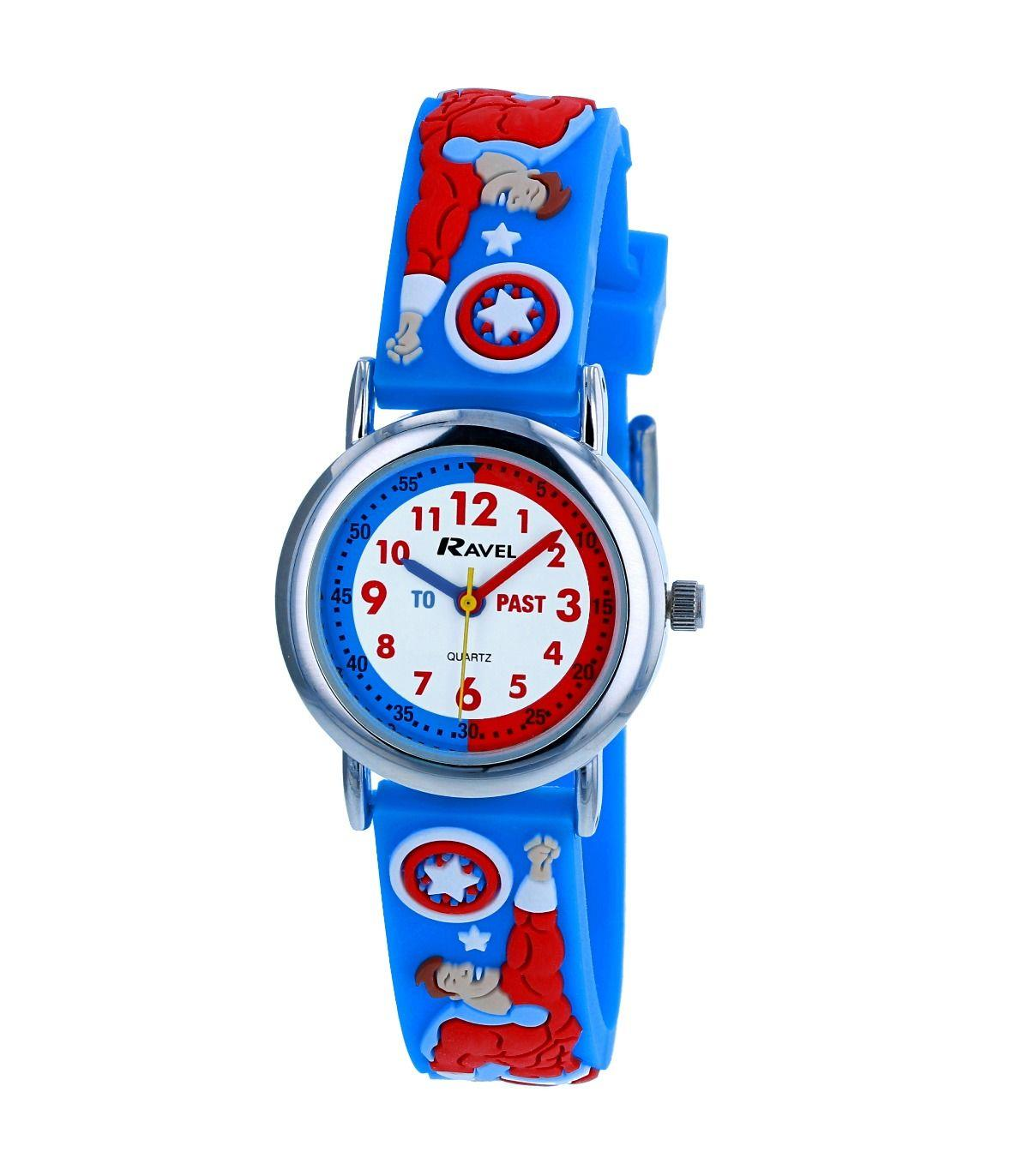 The Ravel Rascal Time Teacher range is the perfect watch to help teach children to tell the time with. Made using a soft silicon strap with high quality 3D childrens designs and a colour co-ordinated time teacher dial this watch will help demonstrate the difference between "to" and "past." It has a numbered minute track with a full 1-12 dial and coloured hour and minute hands to make learning to tell the time as easy as possible.