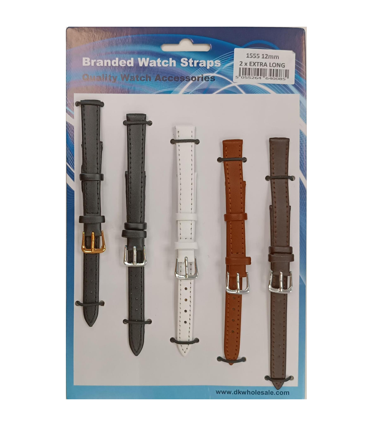 1555.05 12MM 2X Extra Long Mix Colour Leather Watch Straps Pack of 5
