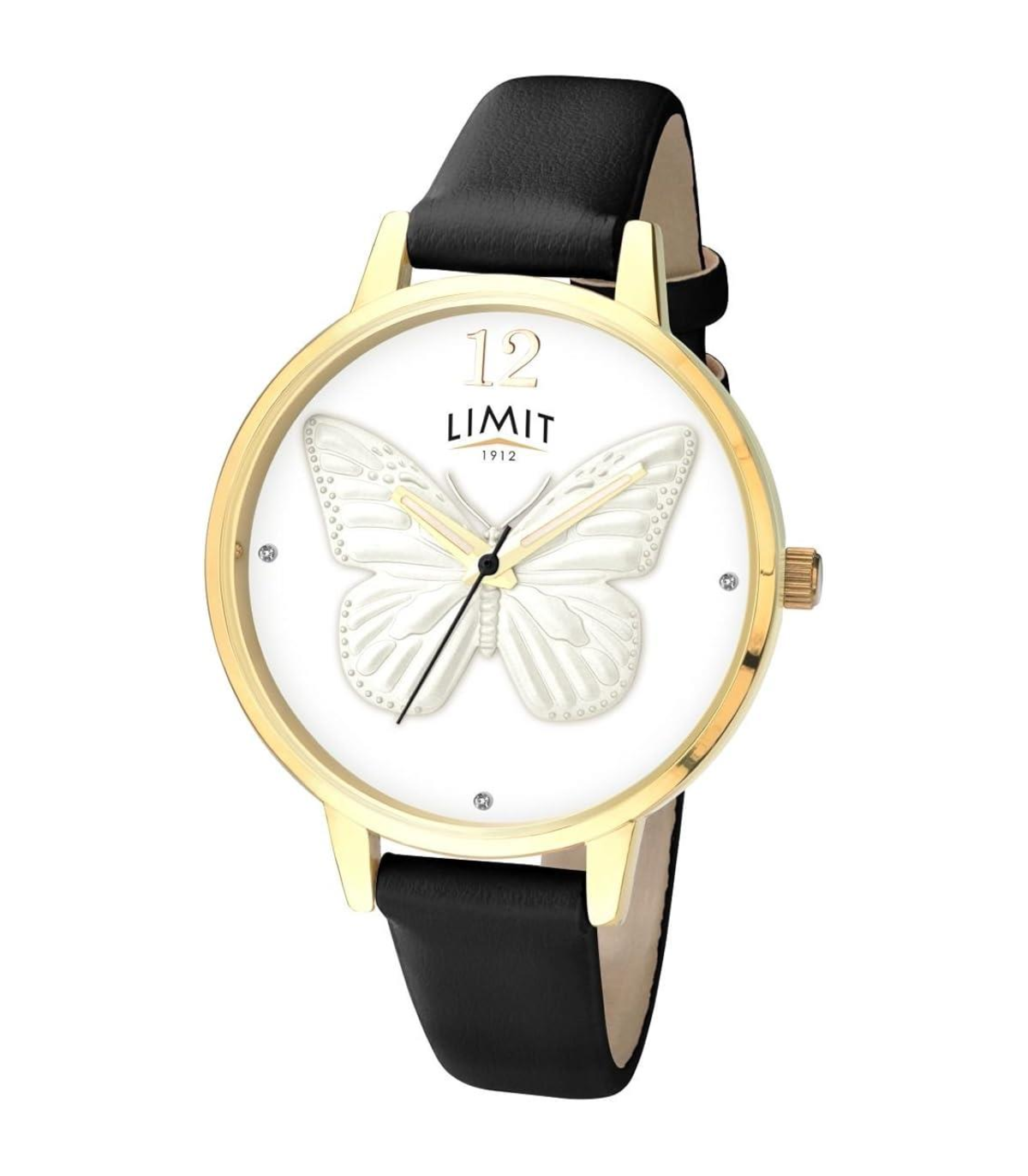 Secret Garden by Limit Ladies Analogue watch. White dial features 3D Butterfly. Black strap.Limit is a British company supplying watches to the UK since 1912. Our watches are designed to offer quality and value, this has ensured its success for over 100 years. Today all Limit watches use a Japanese high precision quartz movement to achieve total accuracy.