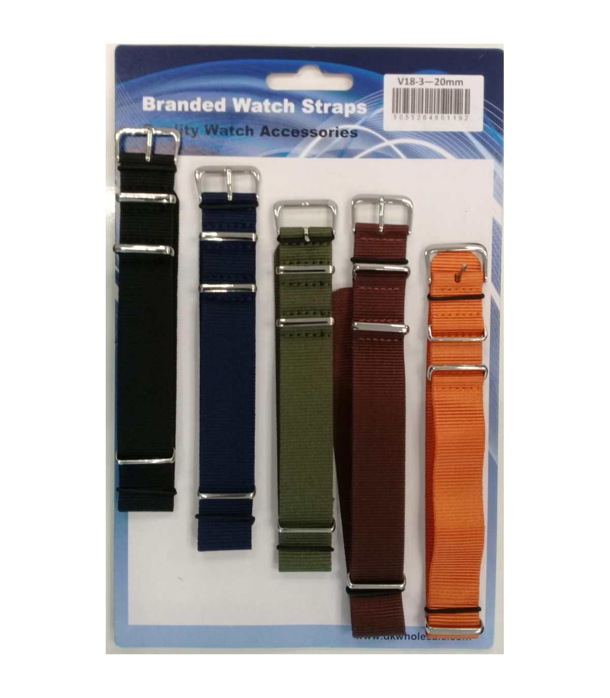 Nato style fabric watch strap 5pk assorted plain colours V18.18mm