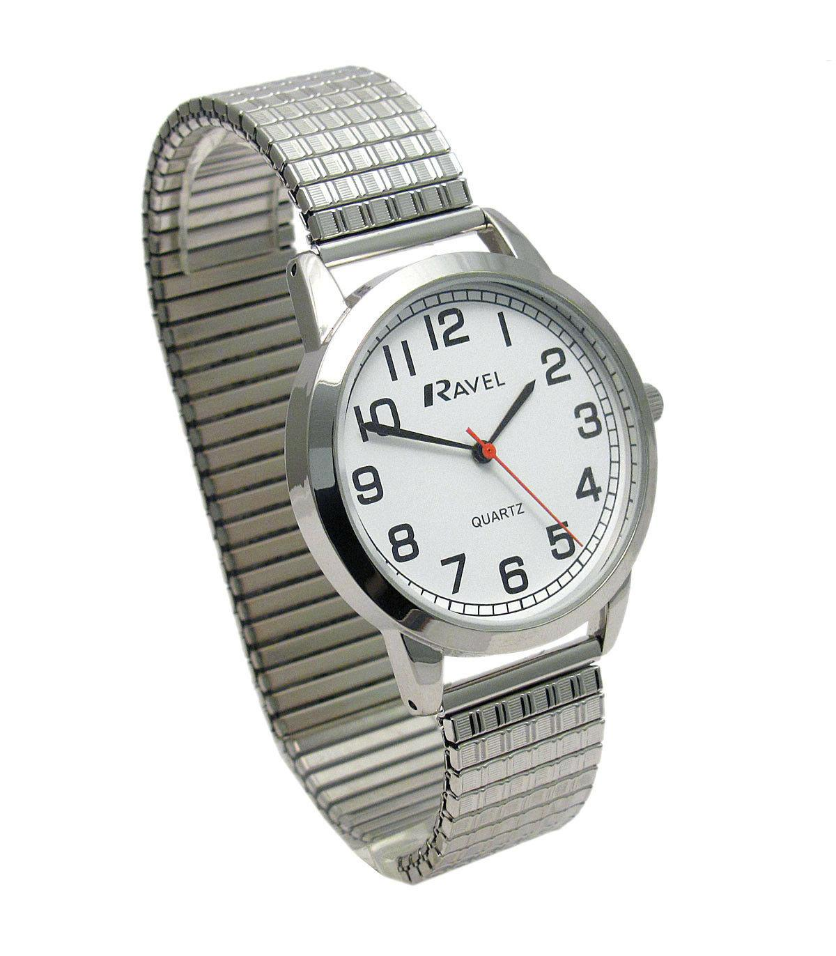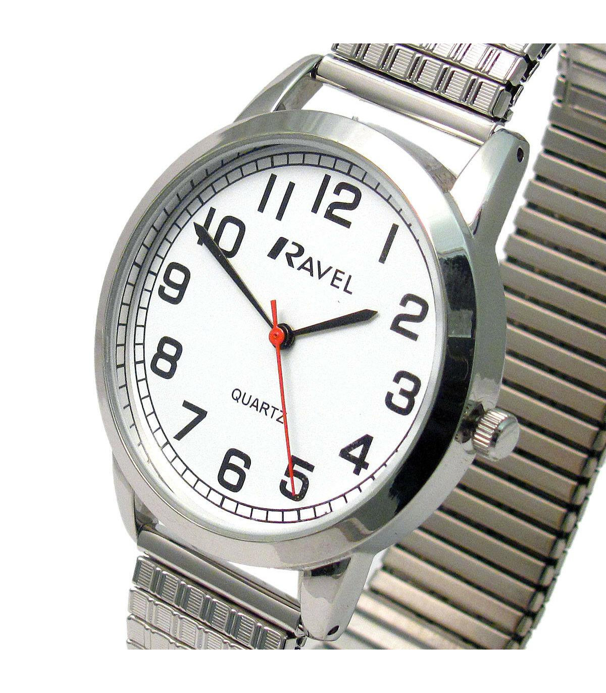 Ravel Men's Bold Number White Dial Expander Bracelet Watch R0232