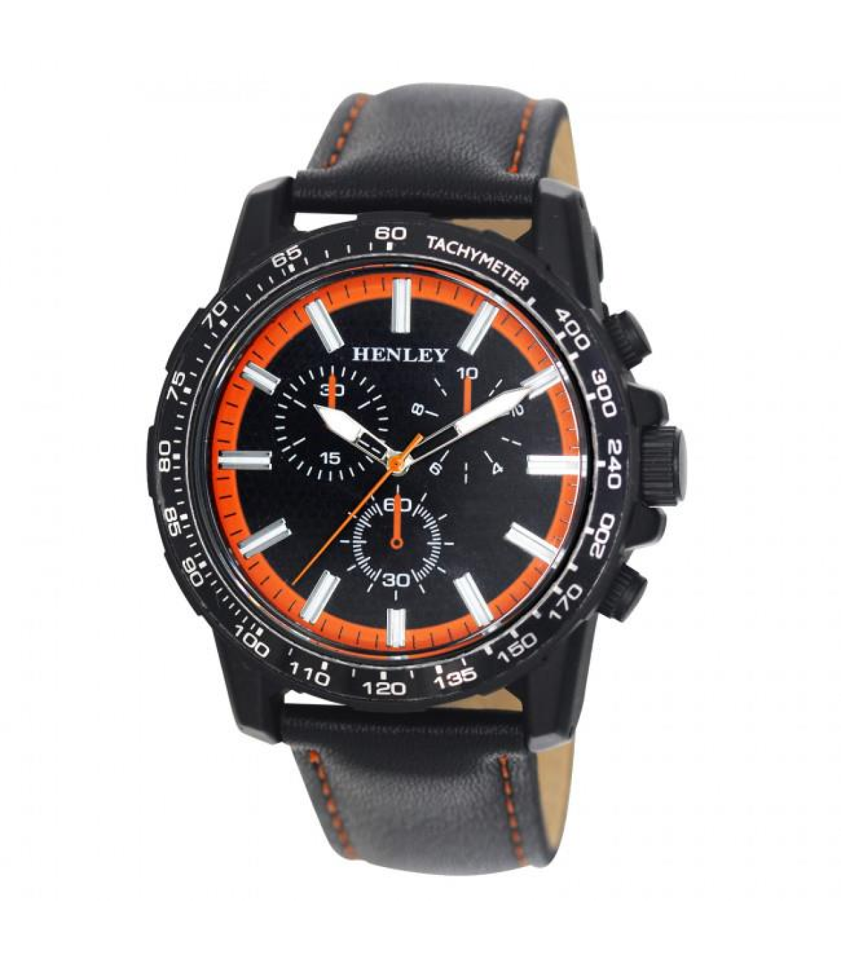 Henley Mens Satin Black Sports Coloured Stitch Multi Eye Watch Black/Orange H03015.8