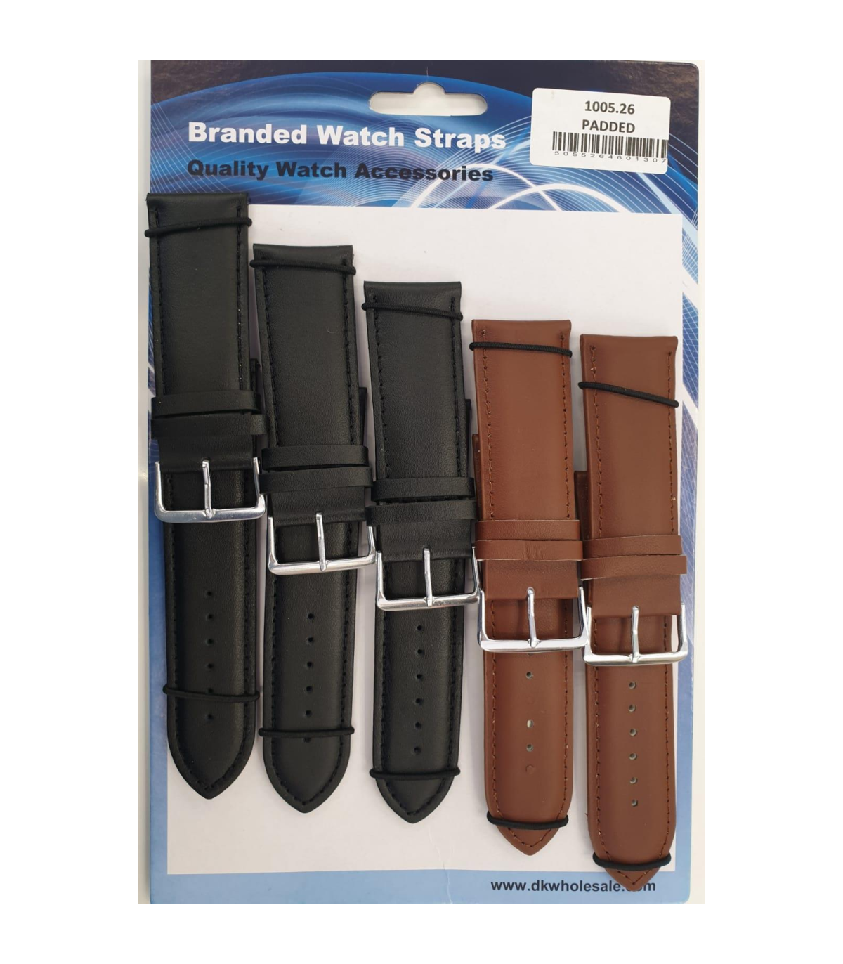 1005 Padded Leather Watch Straps Pk5 Black & Brown mixed 28mm