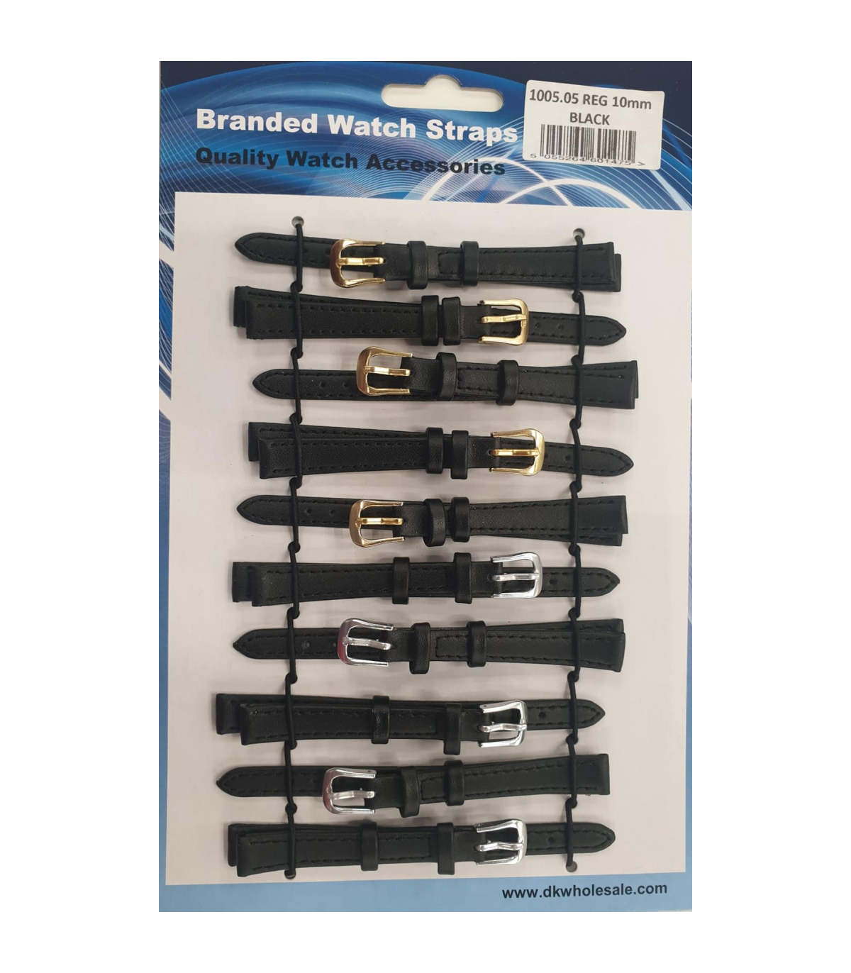 Leather Black Watch Straps Pk10 size 10mm 1005.05