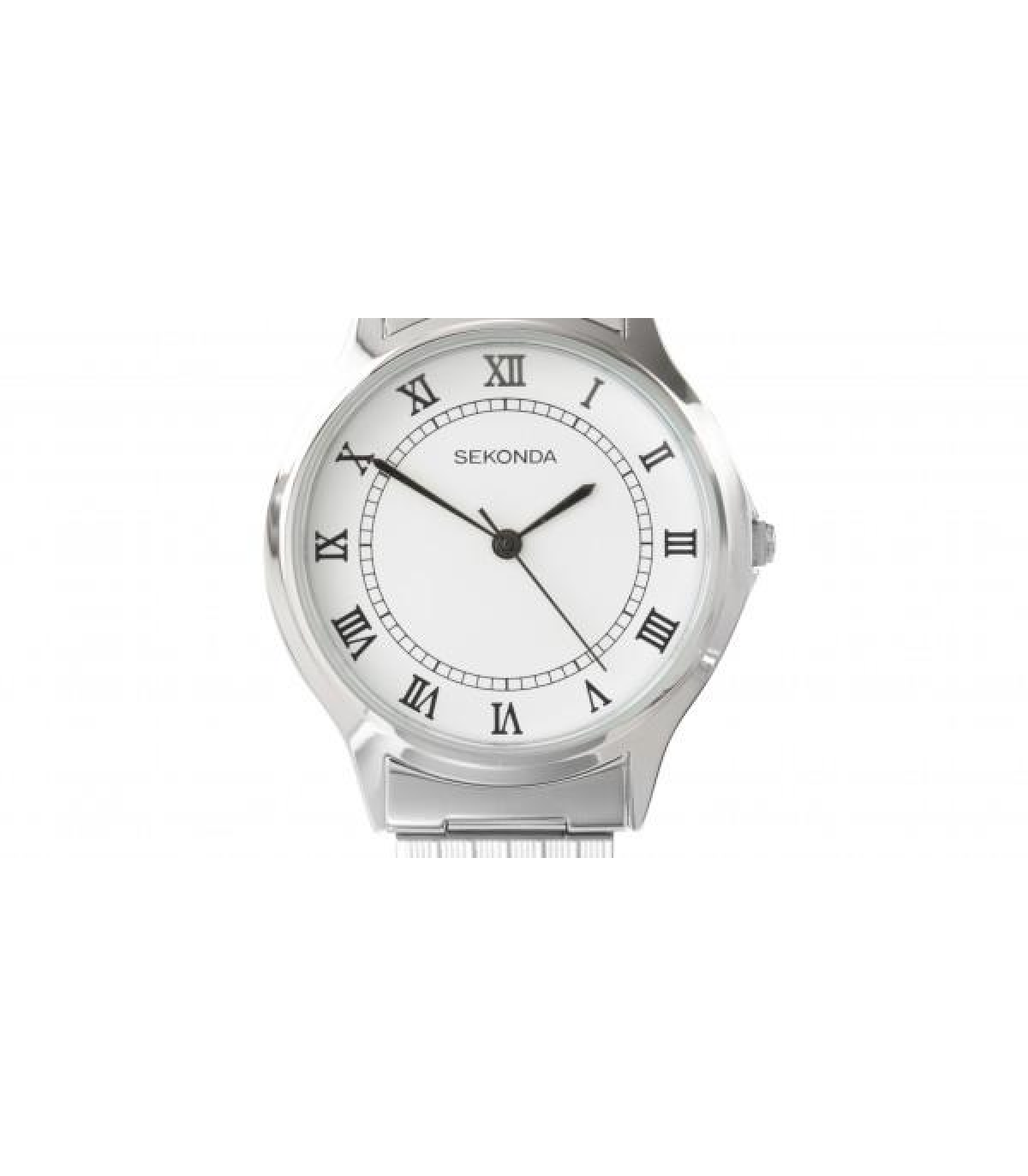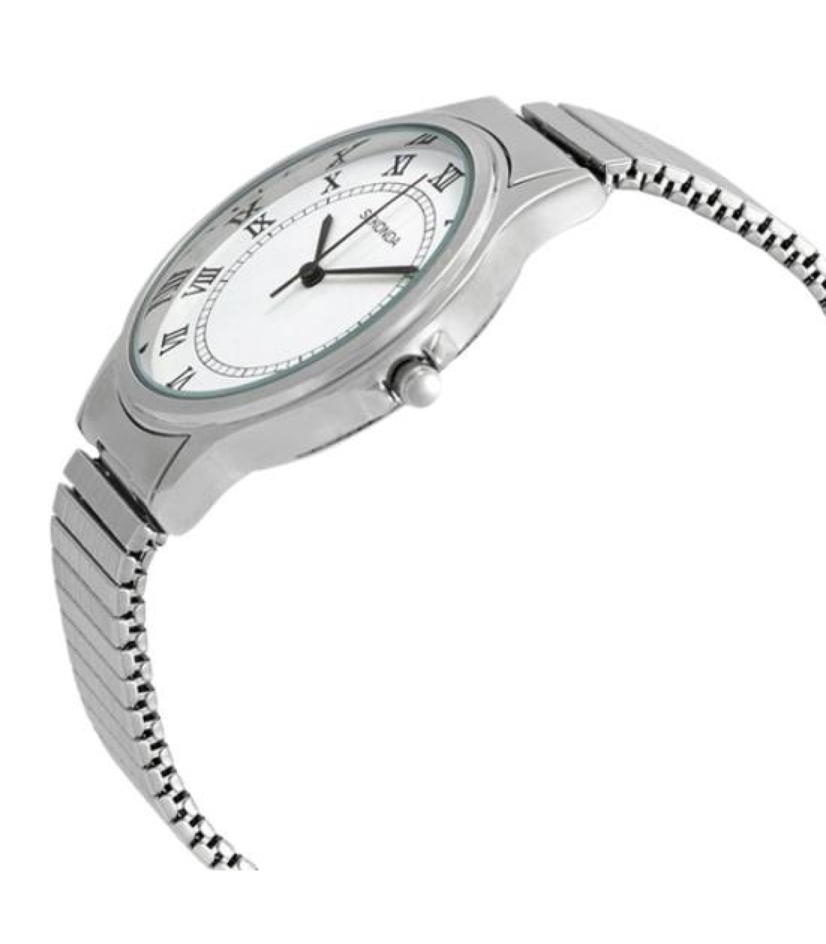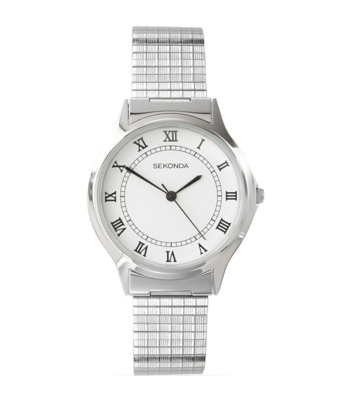 The polished steel watch is smart for those special occasions. The white dial also features Roman numerals adding style to the watch.