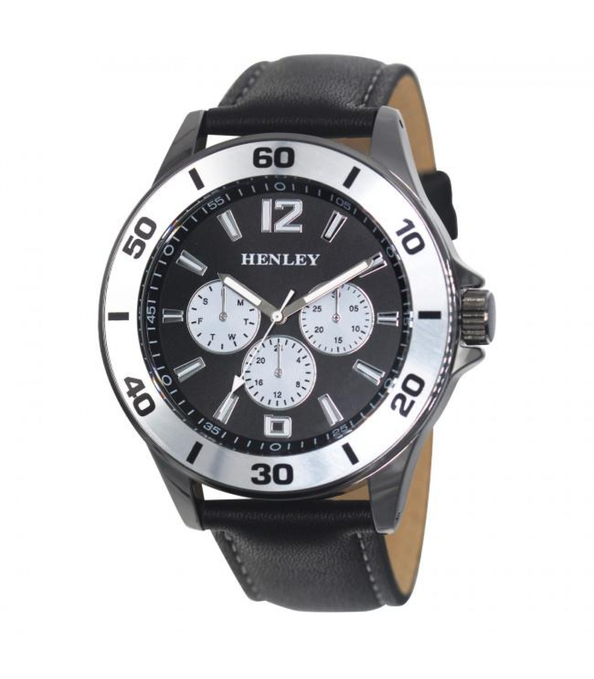 Henley Mens Polished Gun Sports Coloured Stitch Multi Eye Watch Gun/Silver H03014.13