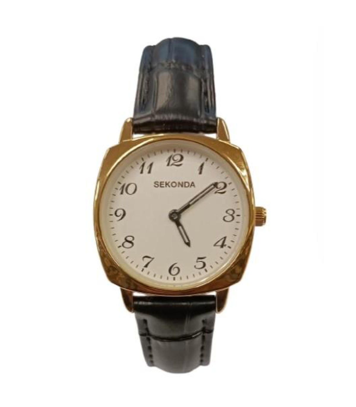 Sekonda Quartz Gold plated case White Dial Black Leather Strap Ladies Watch 2 year guarantee