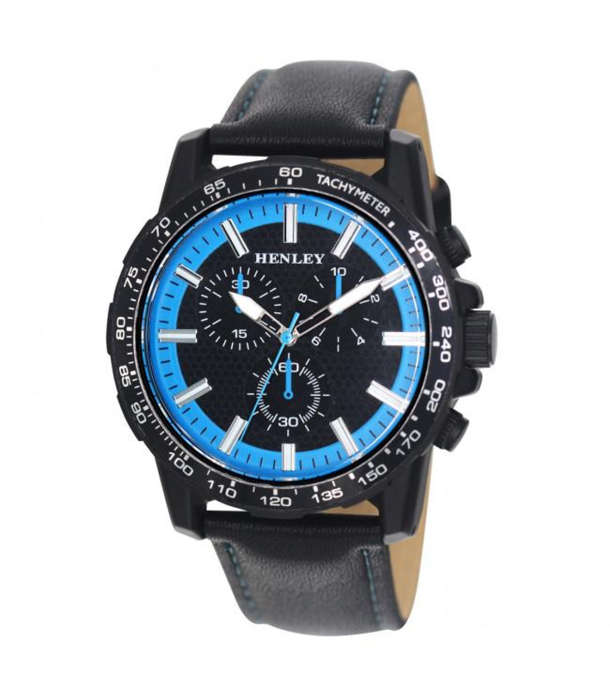 Henley Mens Satin Black Sports Coloured Stitch Multi Eye Watch Black/Blue H03015.6