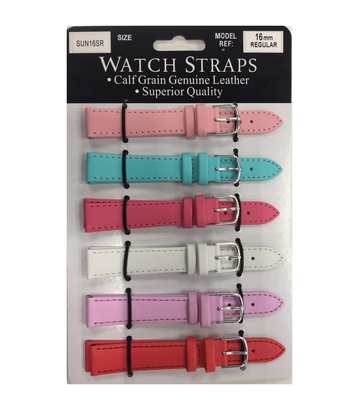 SUNSR Sun Mixed Colour Calf Leather Watch Straps Regular card of 6 - Silver Buckle