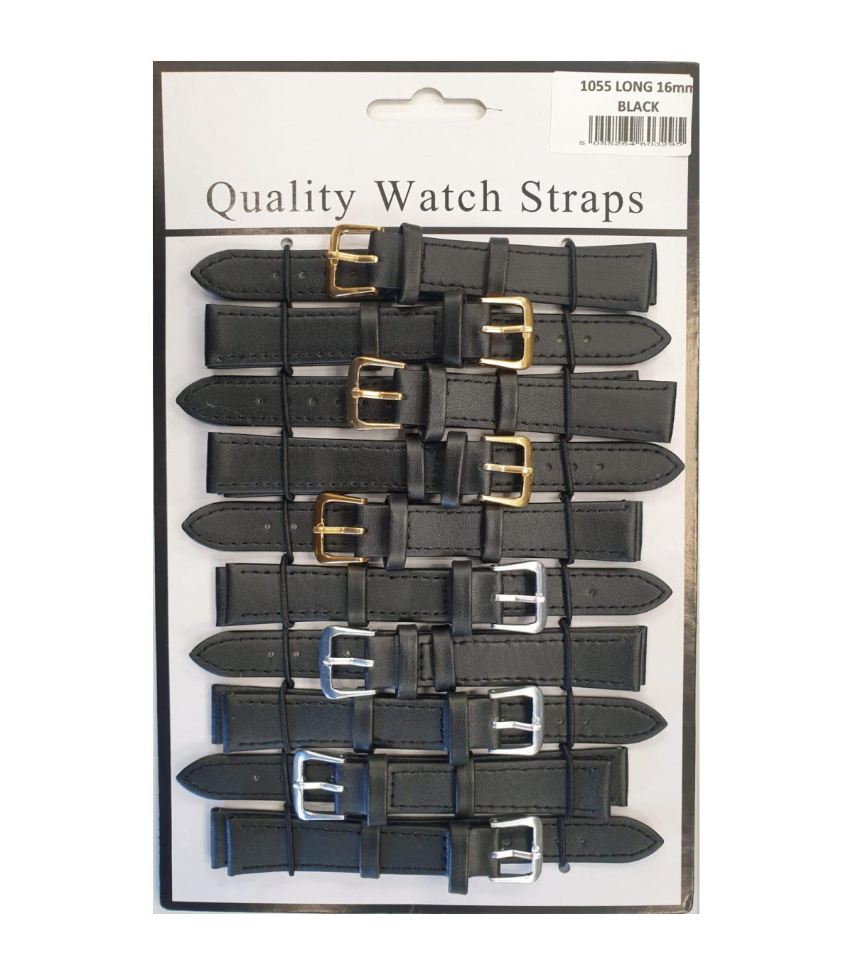 Leather Black Extra Long Watch Straps Pk10 size 16mm 1055.05