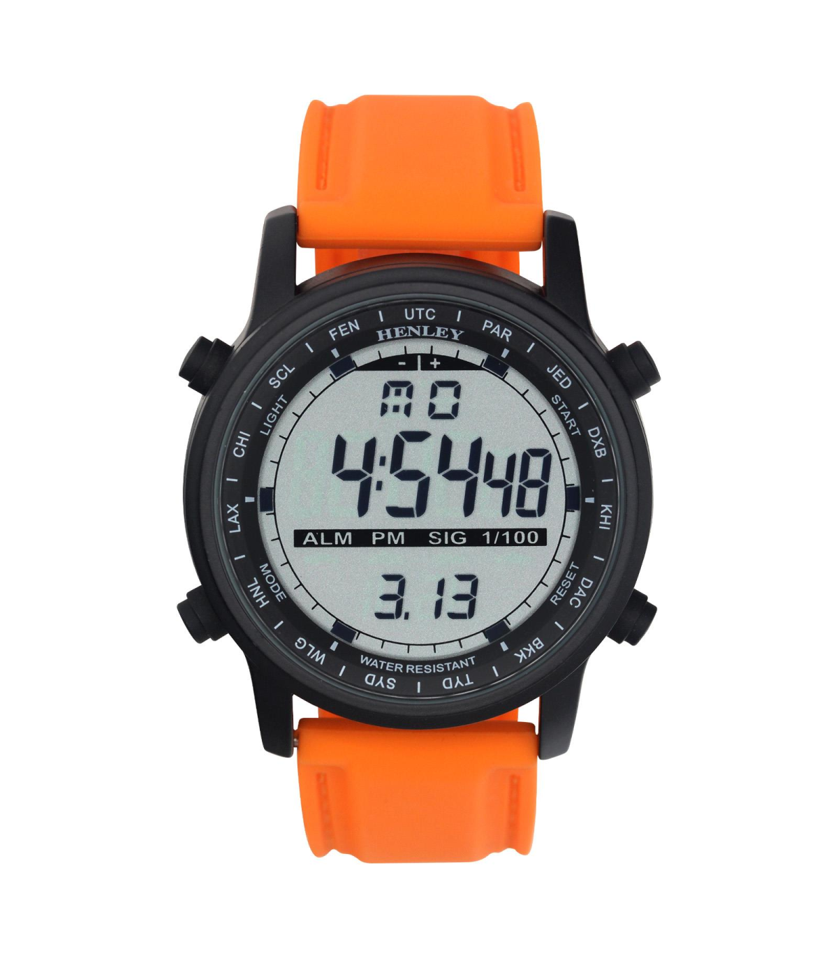 Henley Mens Digital Black Dial Rubber Strap Watch Orange HDG038.8