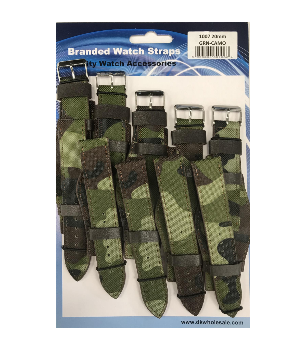 Leather Camo Green Military Watch Straps Pk5 20mm 1007GRN