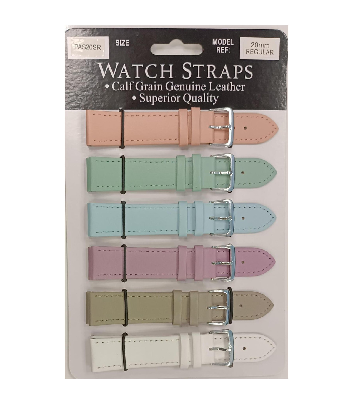 PASSR Sun Mixed Pastille Colour Calf Leather Watch Straps Regular card of 6 - Silver Buckle