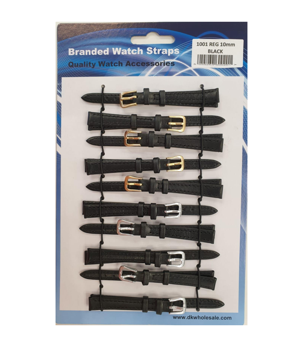 Black Leather Watch Straps Pk10 size 10mm 1001BK