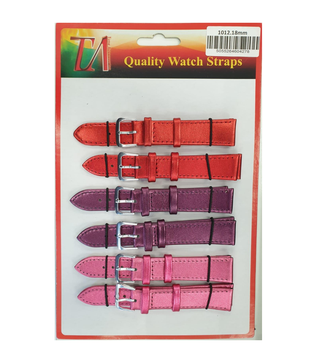 Watch Straps Metallic Colours Red/Pink/Purple 18mm - 6pk