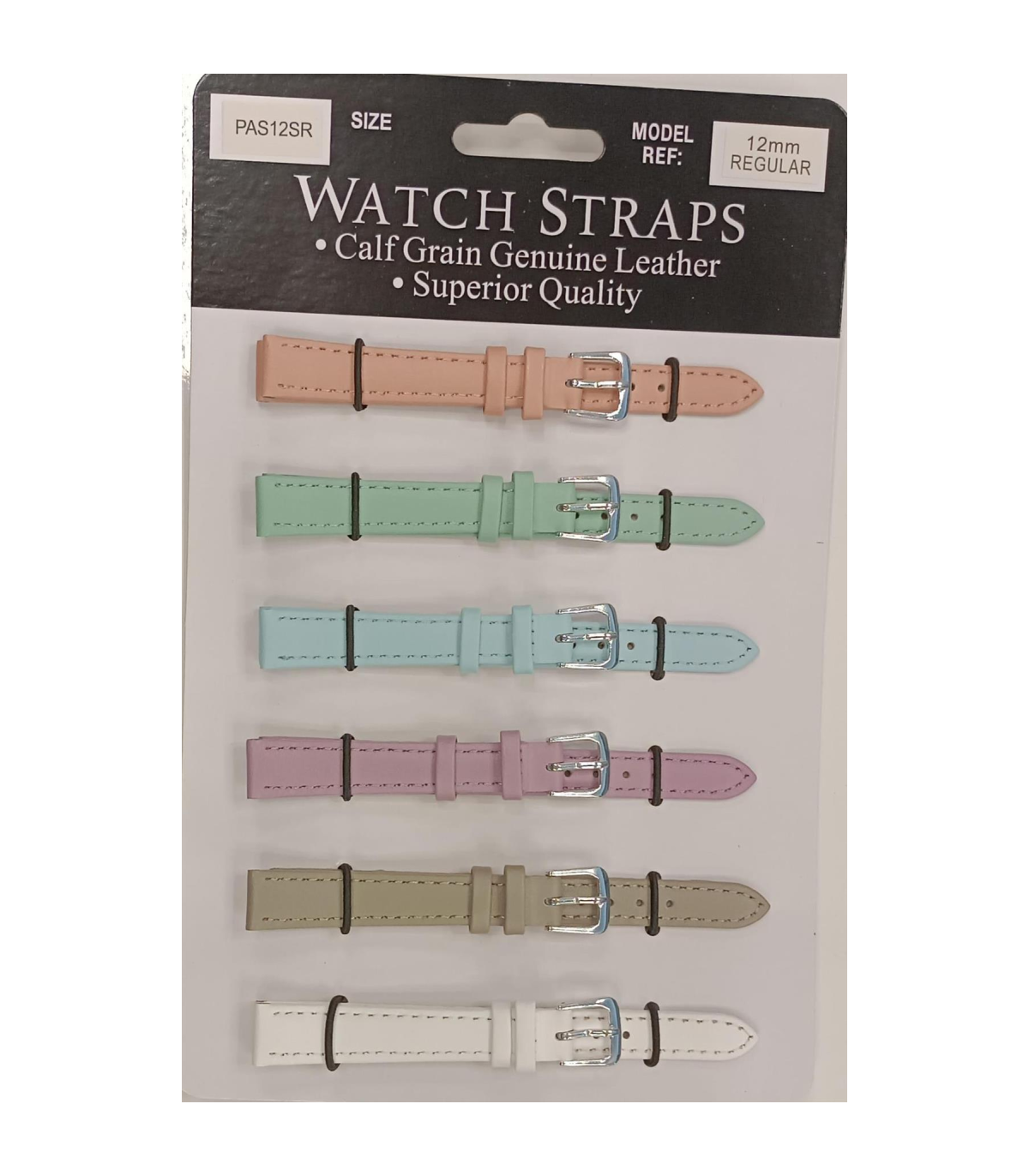 PASSR Sun Mixed Pastille Colour Calf Leather Watch Straps Regular card of 6 - Silver Buckle