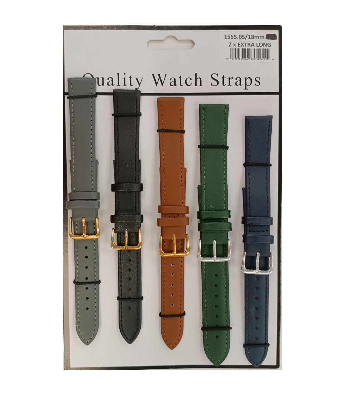 1555.05 18MM 2X Extra Long Mix Colour Leather Watch Straps Pack of 5