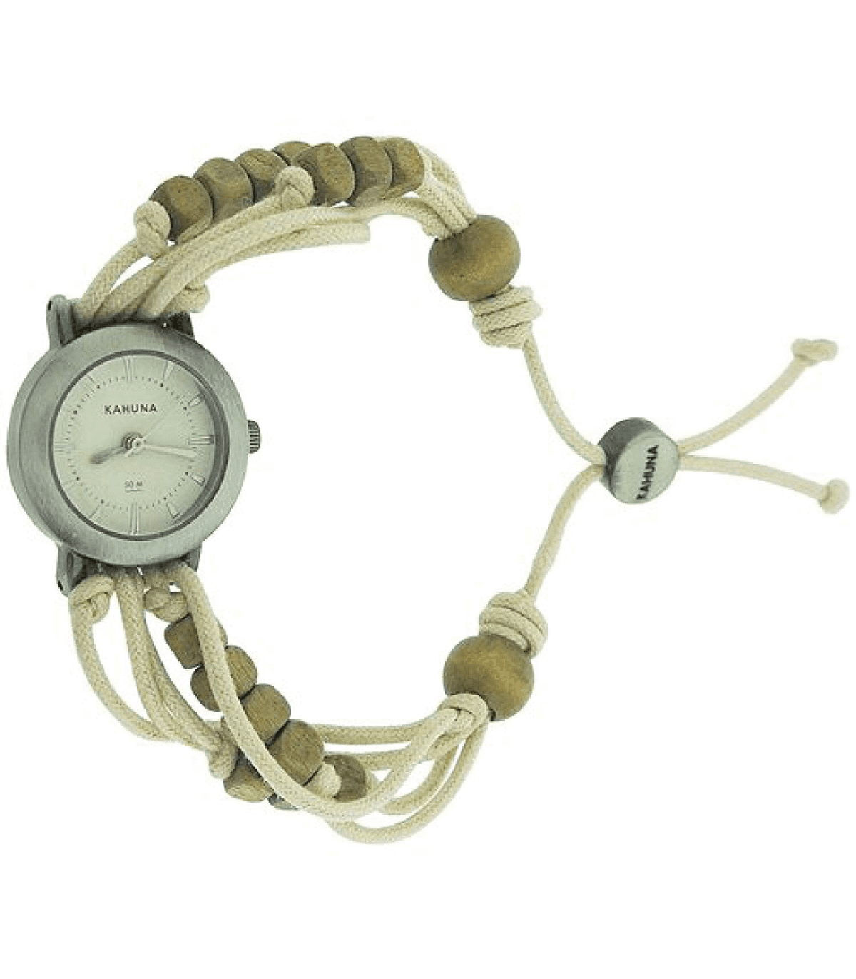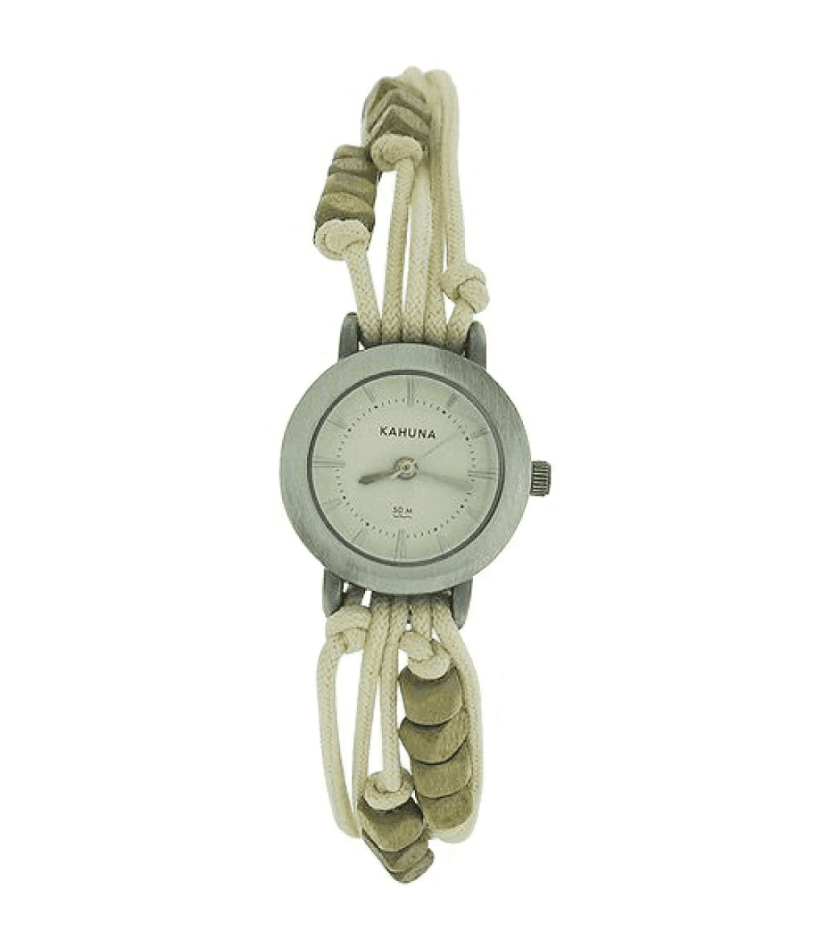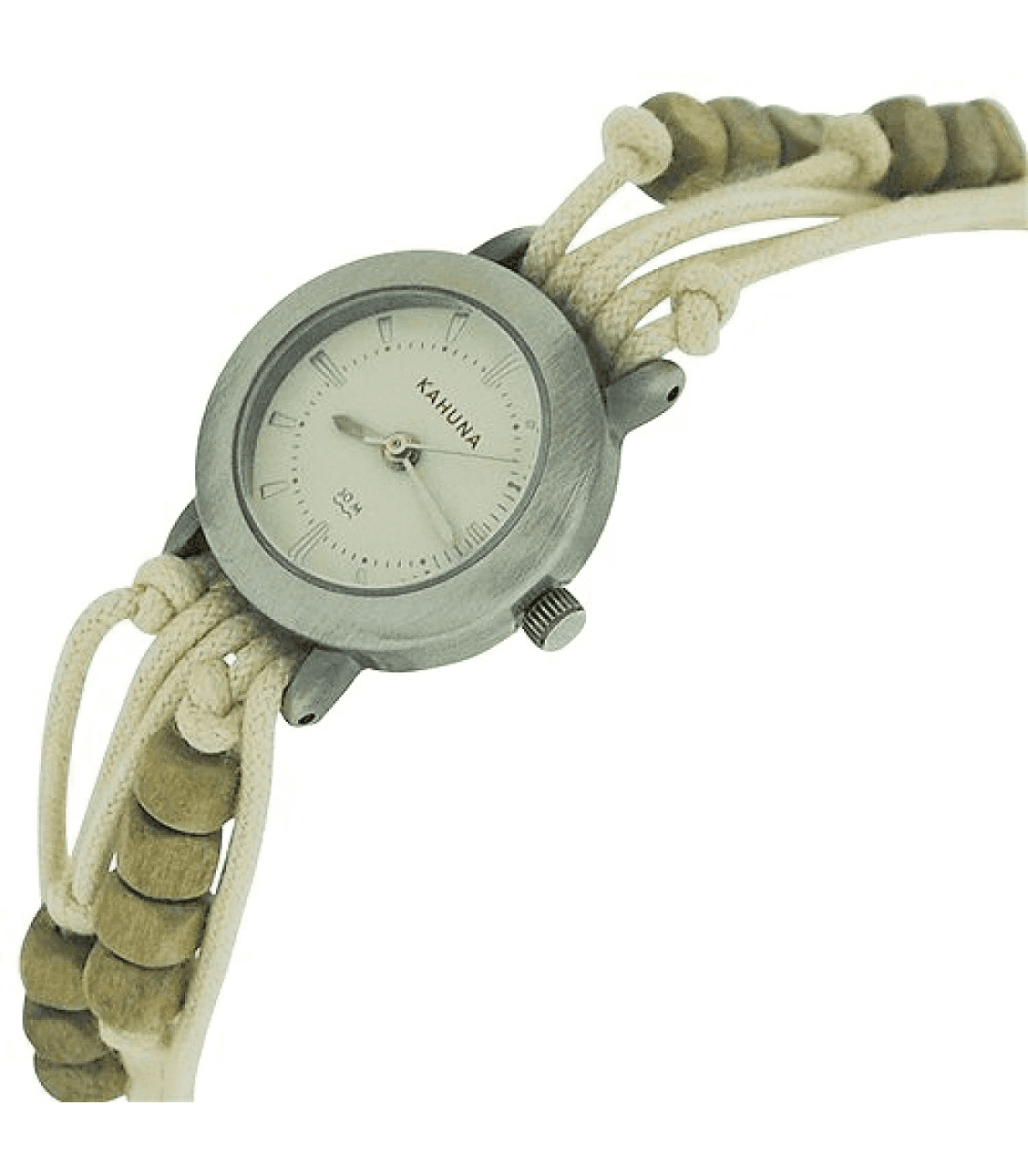 Kahuna watch is made from stainless steel and is fitted with an analogue quartz movement. It is fastened with a white fabric strap and has a white dial. SPECIFICATIONSBrand : KahunaPackaging : Kahuna packagingGuarantee : Kahuna 2 year guaranteeCase width